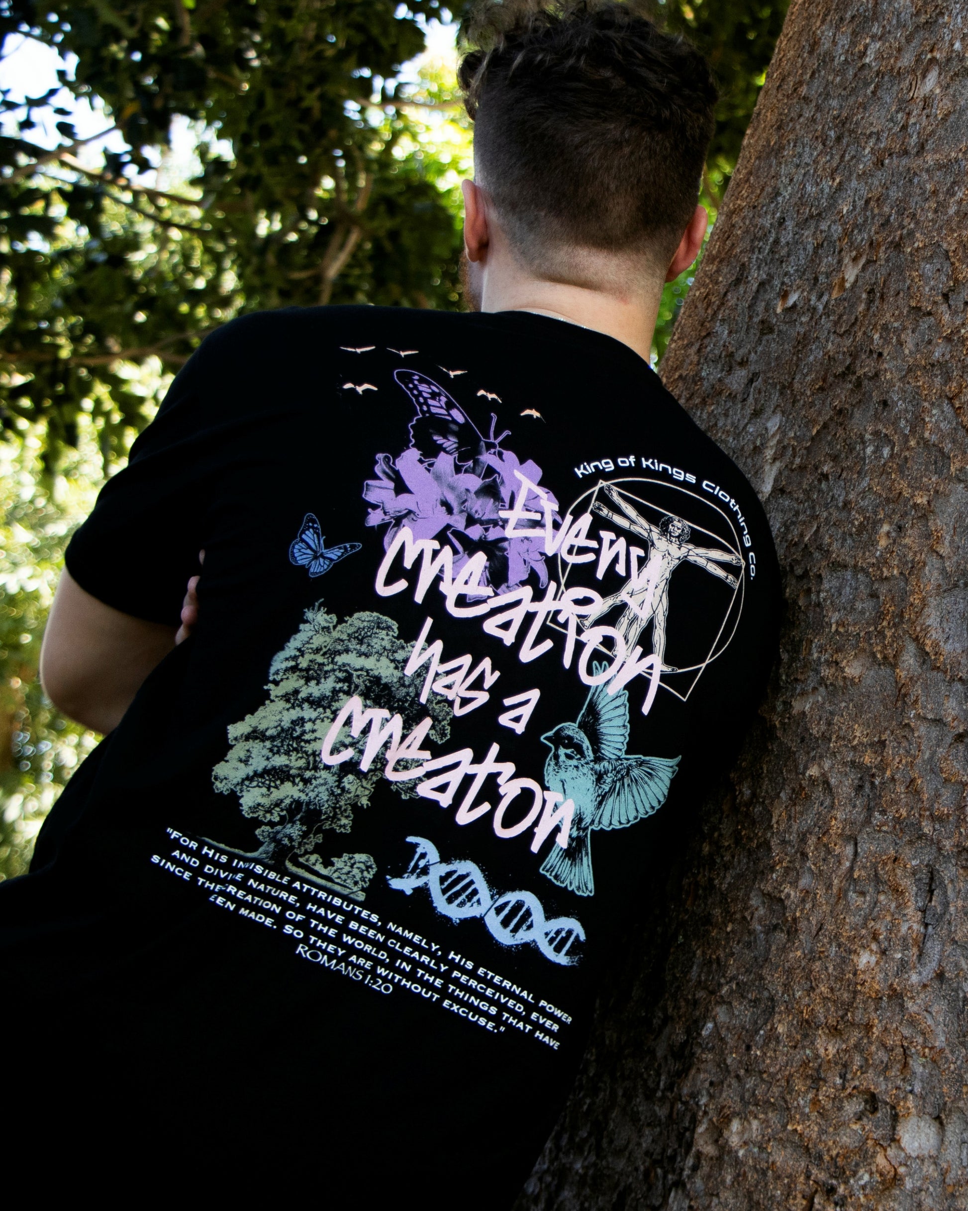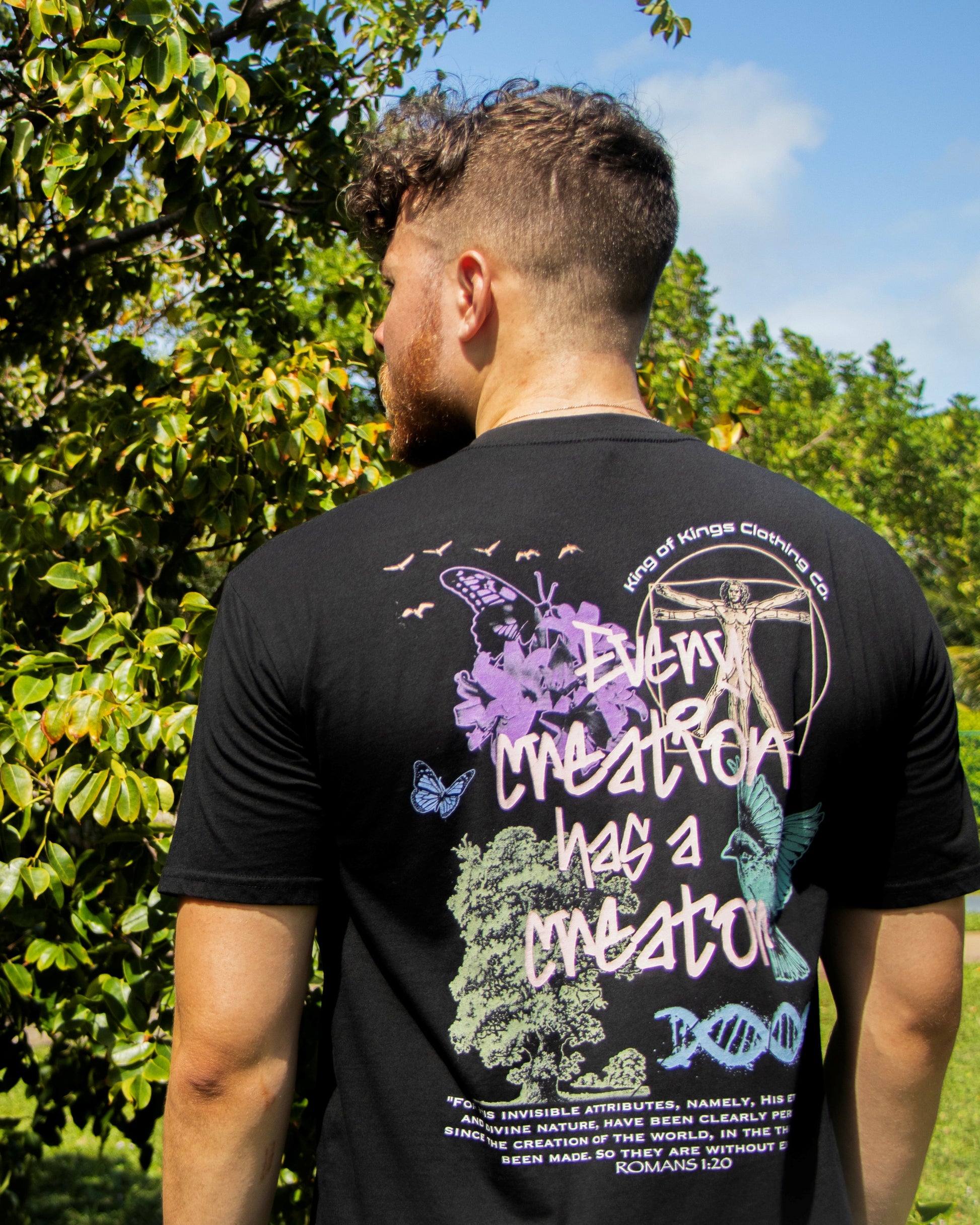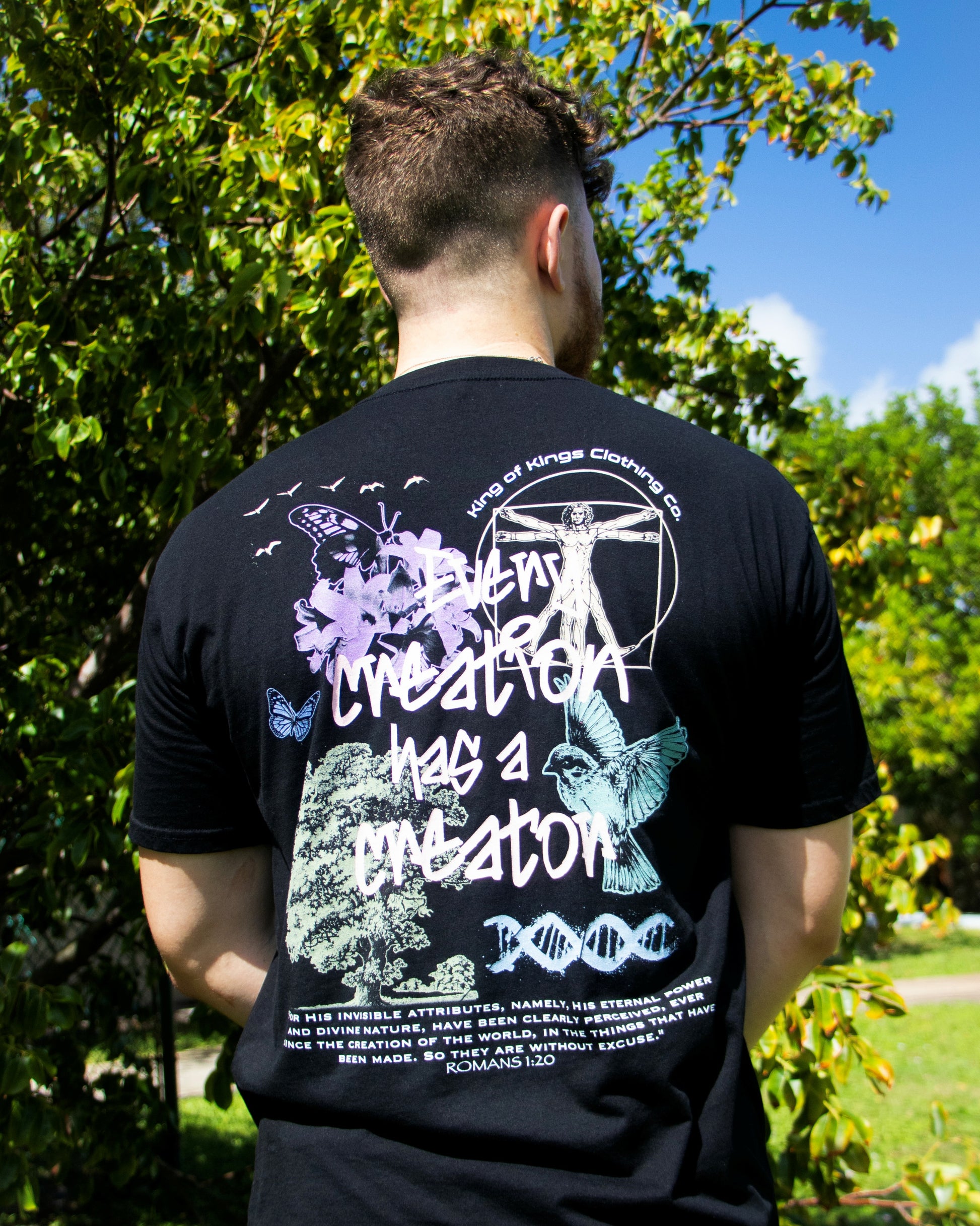 This shirt boldly proclaims the truth that everything in existence points to a Divine Creator. From the vastness of the universe to the intricacies of life, each creation reflects the handiwork of God. Wearing this shirt is a testament to the belief that our world is not random, but intentionally designed by a loving Creator. It’s a reminder to acknowledge the beauty and purpose in all things, and to honor the One who made it all.