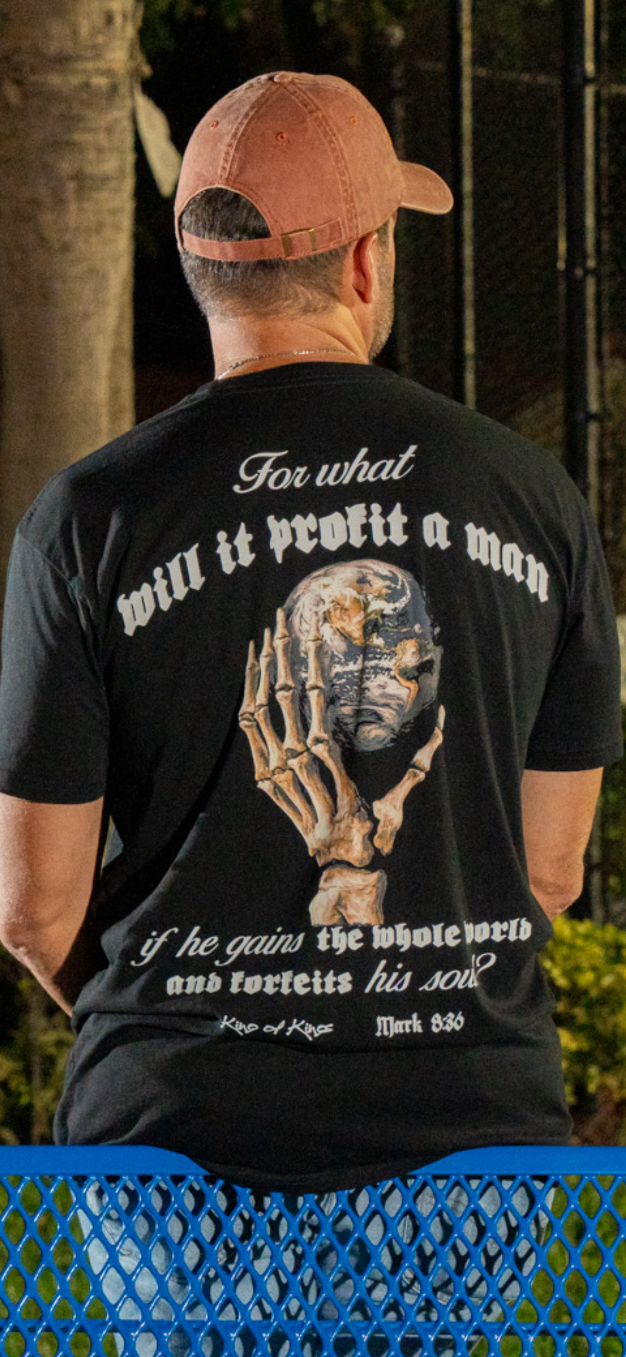 This shirt carries a timeless and thought-provoking message inspired by Matthew 16:26. It challenges us to reflect on the fleeting nature of worldly success and the eternal importance of our souls. By wearing this shirt, you proclaim the truth that no earthly treasure can compare to the priceless gift of salvation through Christ. It's a bold reminder to prioritize what truly matters and to live for eternity, not just for today.